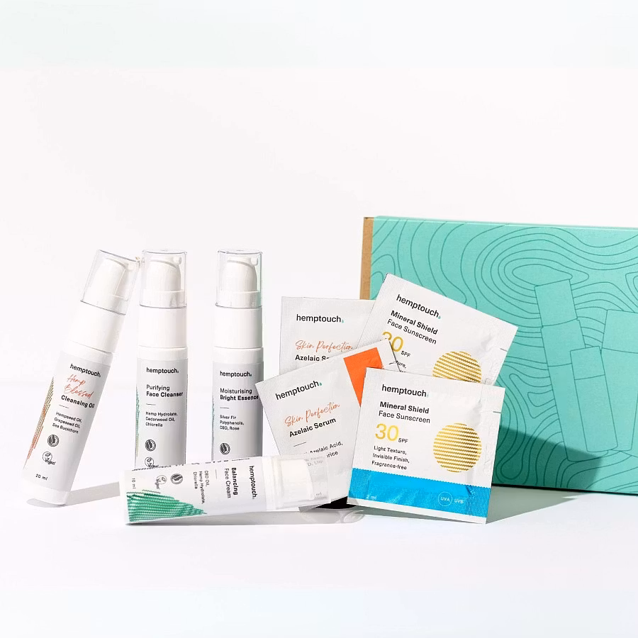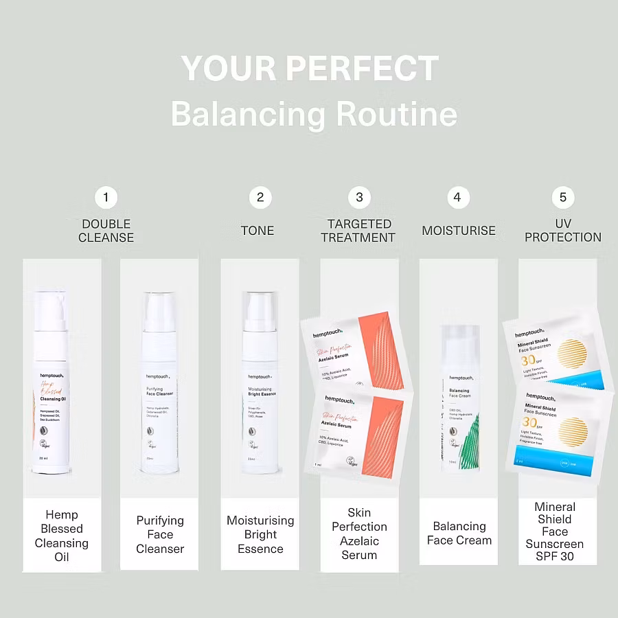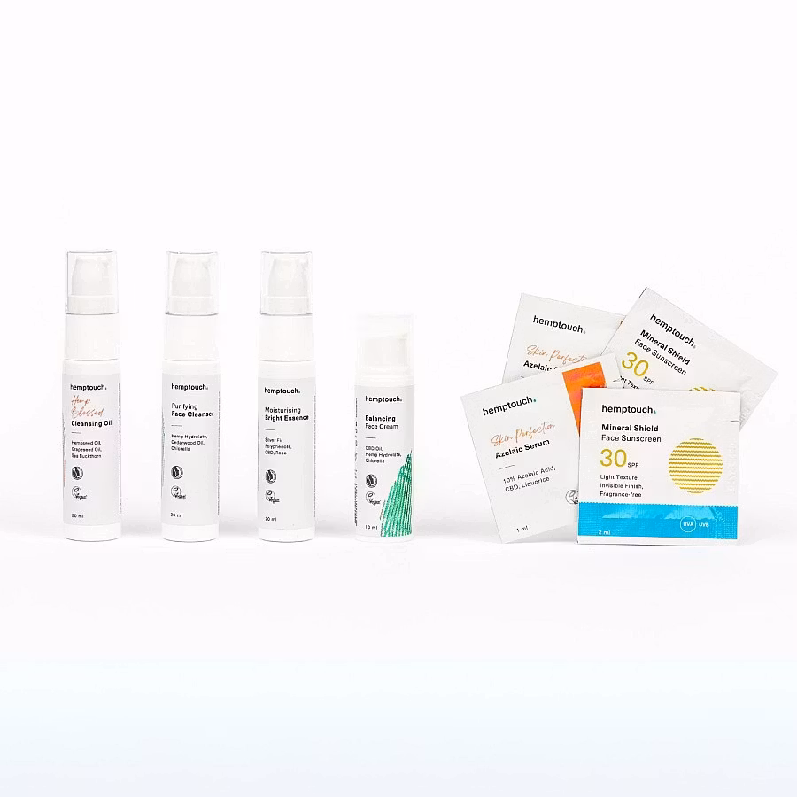 Upptäck Hemptouch Balancing Set – en komplett minirutin som rengör, återfuktar och balanserar fet, kombinerad och oren hud på bara 1–2 veckor.