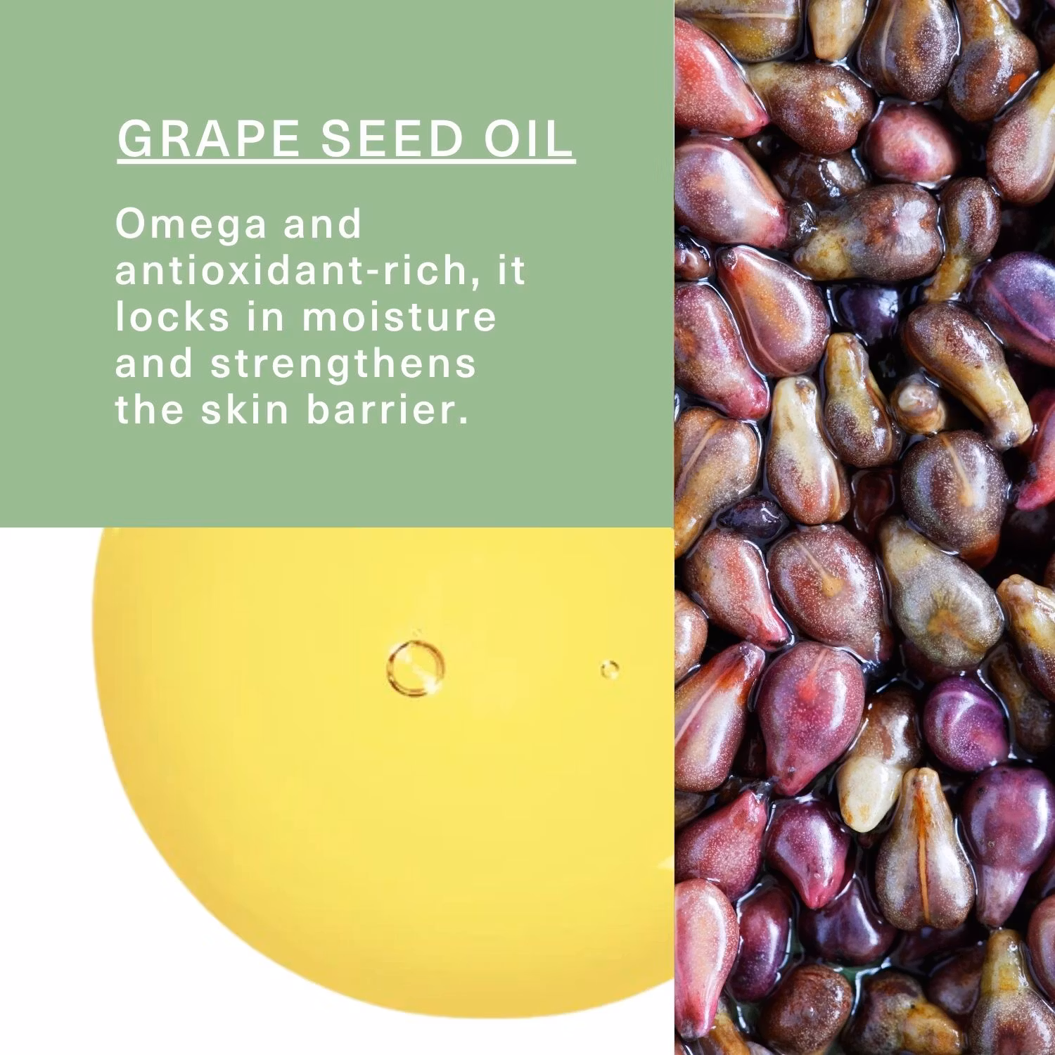 Aqua, Coco-glucoside, Glycerin, Glyceryl oleate, Polyglyceryl-10 caprylate/caprate, PCA glyceryl oleate, Vitis vinifera seed oil, Cannabis sativa seed oil, Glyceryl stearate SE, Cetearyl alcohol, Sodium salicylate, Xanthan gum, Litsea cubeba fruit oil, Sodium levulinate, Potassium sorbate, Citric acid, Citral*, Limonene*, Linalool*, Geraniol*, Citronellol*.
