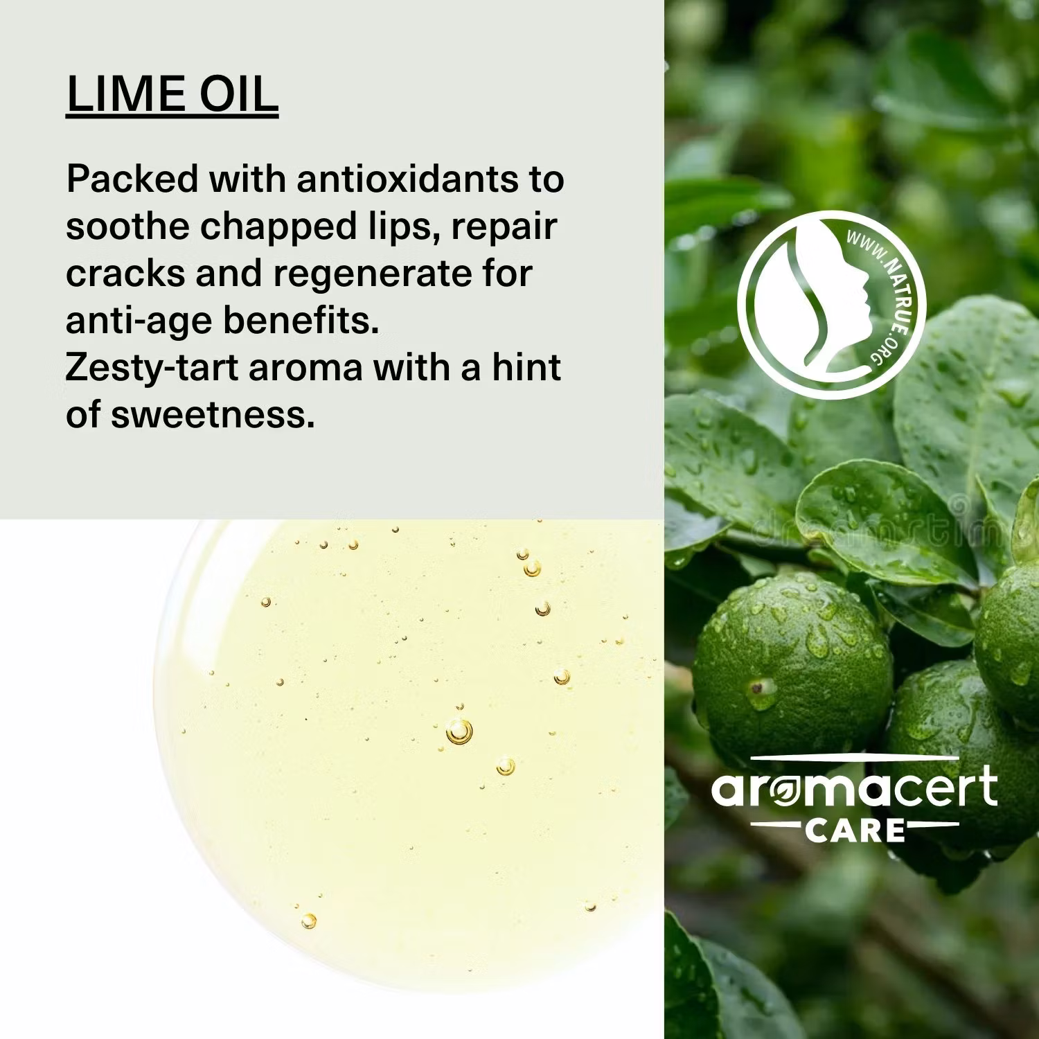 Bivax hjälper till att bevara fukten och gör läpparna mjukare och mer motståndskraftiga. Den eteriska oljan av lime piggar upp och hjälper till att skydda läpparna mot vardagens yttre påverkan.