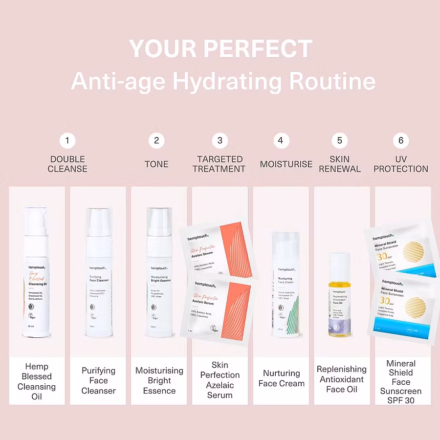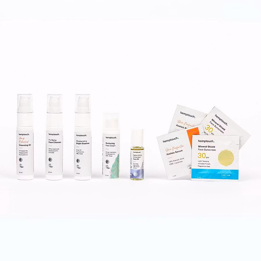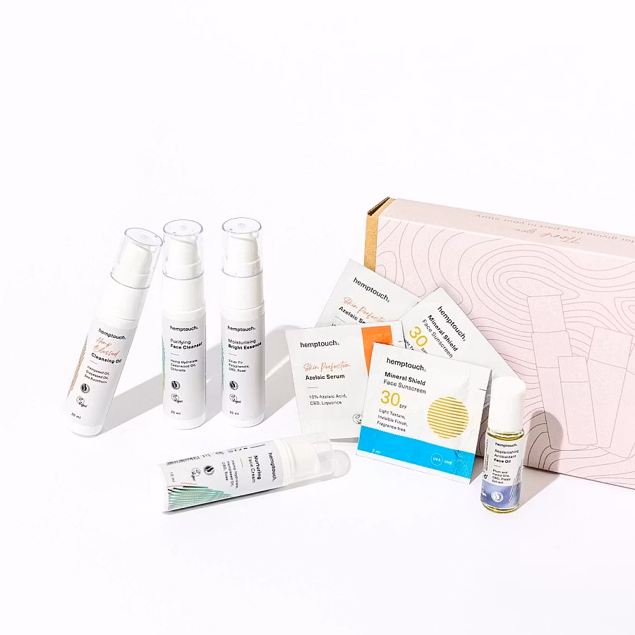 Upptäck Hemptouch Anti-Age Hydrating Set – en komplett minirutin som återfuktar, stärker och ger huden lyster på bara 1–2 veckor.