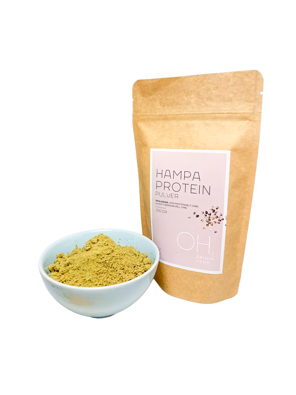 Hampaprotein är ett fullvärdigt växtprotein med alla nio essentiella aminosyror. Det är lättsmält, naturligt glutenfritt och har en mild, nötig smak som gör det enkelt att använda i både matlagning och dryck.