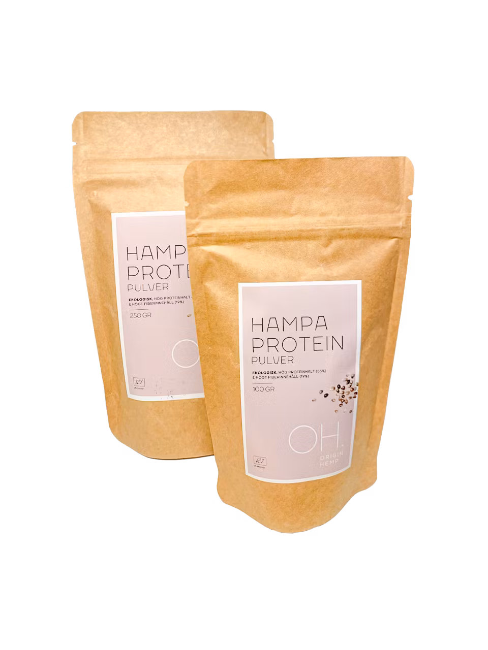Vårt hampaprotein framställs av ekologiska hampafrön odlade på litauiska gårdar, där hållbarhet och kvalitet står i fokus genom hela kedjan – från odling till färdig produkt. Efter kallpressning av fröna separeras oljan, och den näringsrika proteindelen mals till ett fint pulver – helt utan tillsatser.